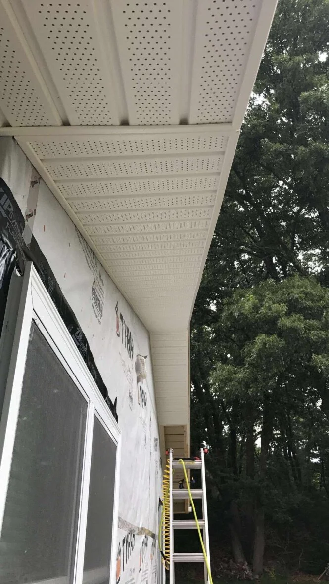 I drilled 3" holes for my soffits, they're covered with brown tape to keep the dang birds out